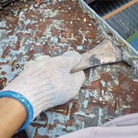 鉄骨階段の表面に発生した錆や高圧洗浄では取り切れなかった旧塗膜を、ヘラやワイヤーブラシなどの道具を使って丁寧に削り落とします。
