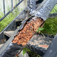 この段階になると、鉄骨階段の強度は著しく低下しているため、踏み抜きや倒壊などの重大な事故につながる恐れもあります。